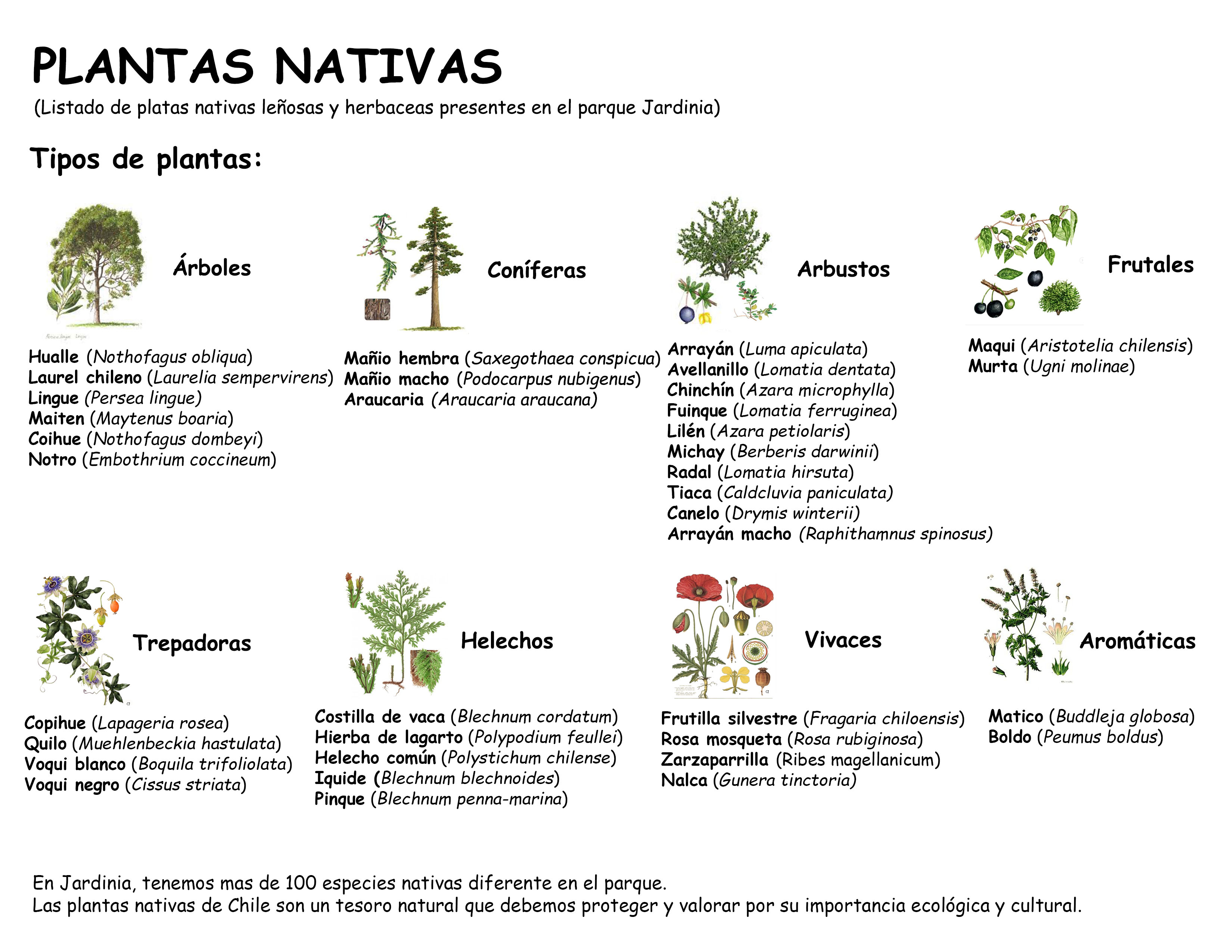 Árboles: Abedul, Acacia, Higuera, Mañio, Notro, Palmera, Peral...