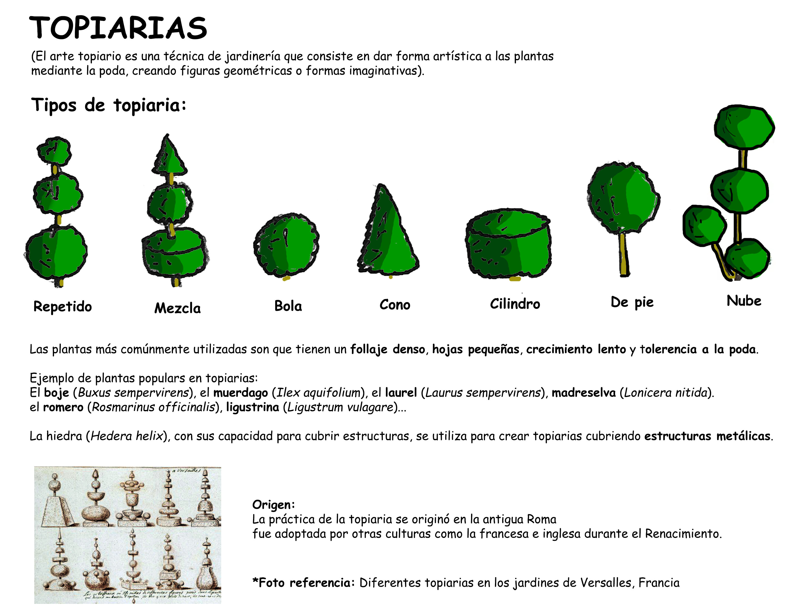 Arbustos: Cítrico, Cotoneaster, Curry, Grevillea, Hibisco, Lavanda, Madreselva, Matico, Margarita, Muerdago, Romero, Teucrio, Veronica...