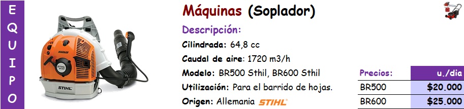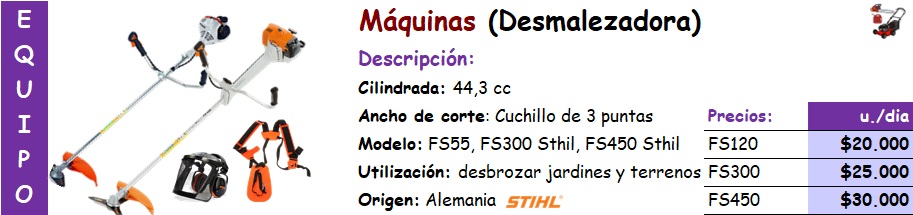 Nuestros equipamientos son de calidad, ellos nos permiten un buen trabajo y detalles en vuestros jardines. Podemos arrendarlos también (*los precios no incluyen bencina)