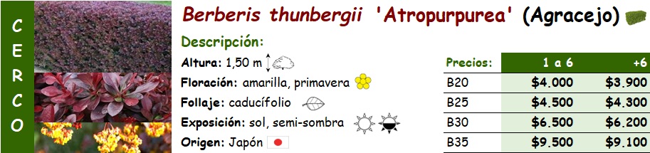 Berberis thumbergii 'Atropurpurea' (Agracejo)