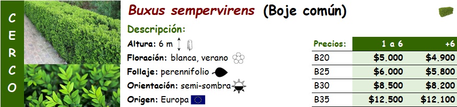 Buxus sempervirens (Boje común)
