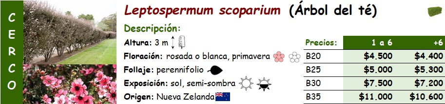 Leptospermum scoparium (Árbol del té): SIN STOCK