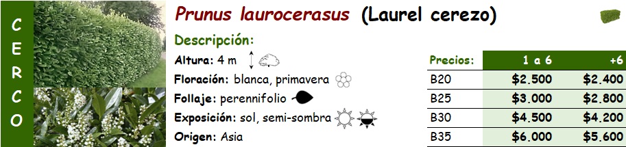 Prunus laurocerasus (Laurel cerezo) SIN STOCK