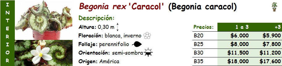 Begonia rex 'Caracol' (Begonia caracol) SIN STOCK