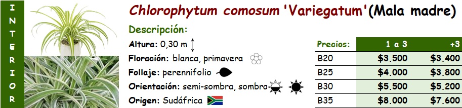 Chlorophytum comosum 'Variegatum' (Mala madre variegada)