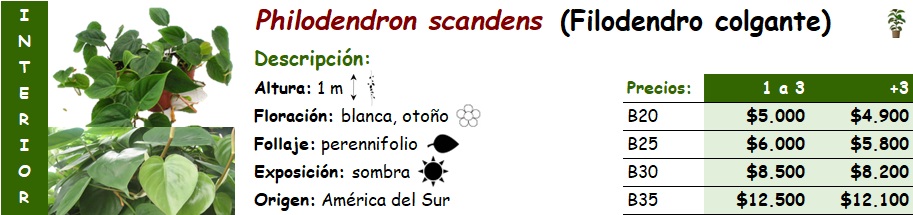 Philodendron scandens (Filodendro colgante)