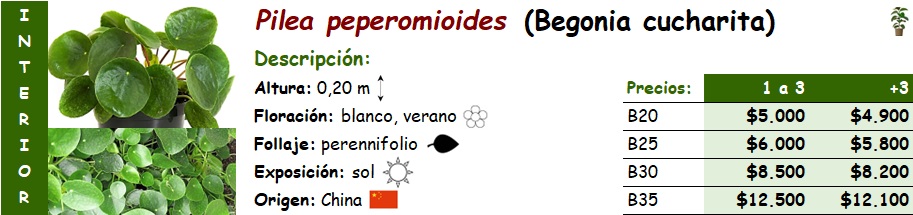 Pilea peperomiodes (Begonia cucharita)